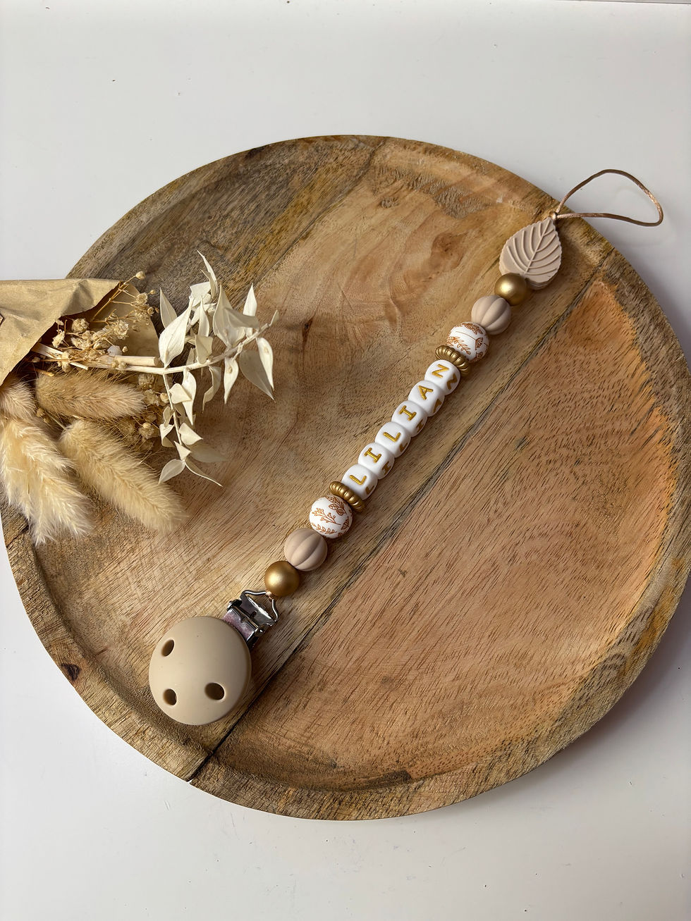 Attache tétine feuille